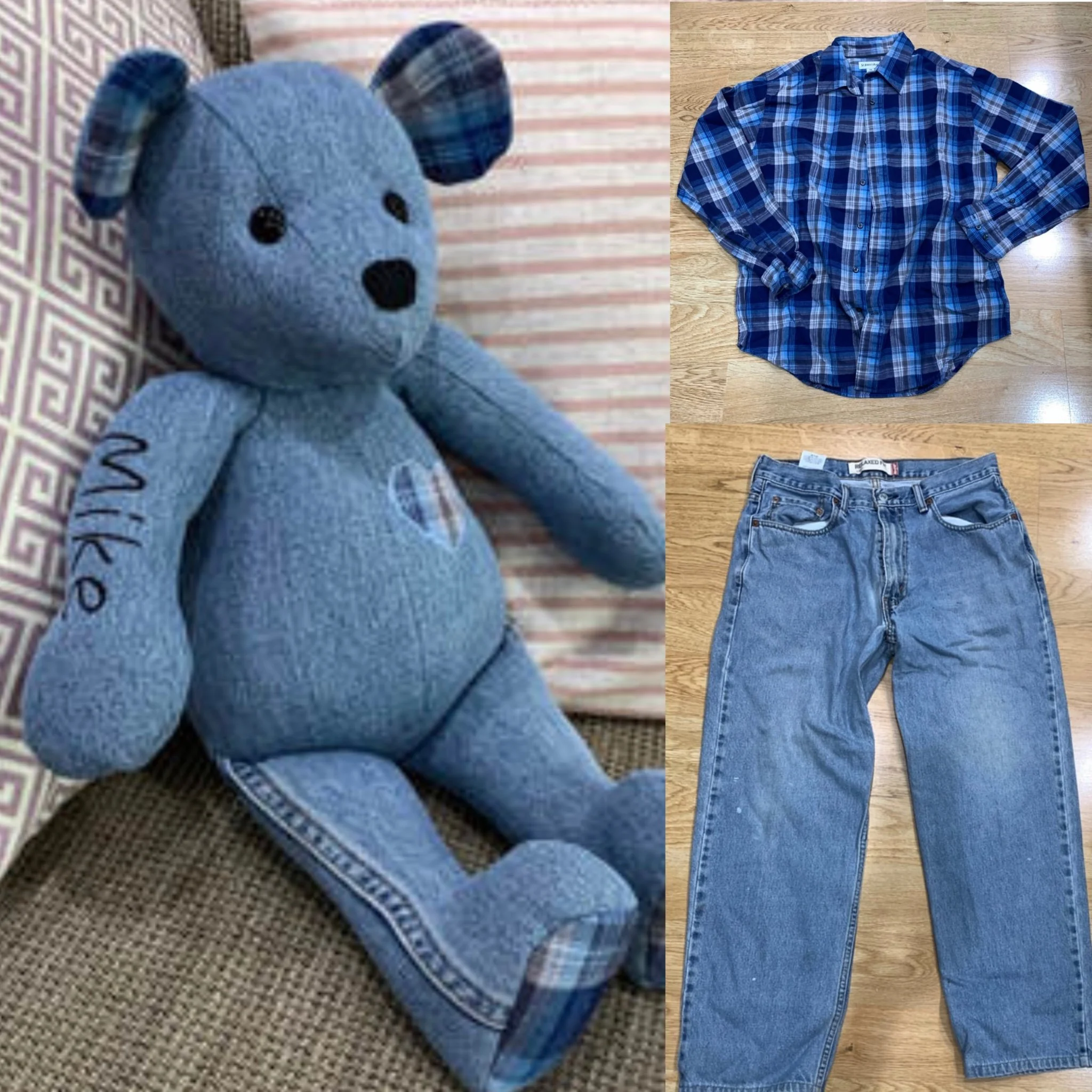 Remember a loved one, a child who has grown up and moved away, recycle your boyfriend's comfy jeans or your dad's old familiar flannel shirt.