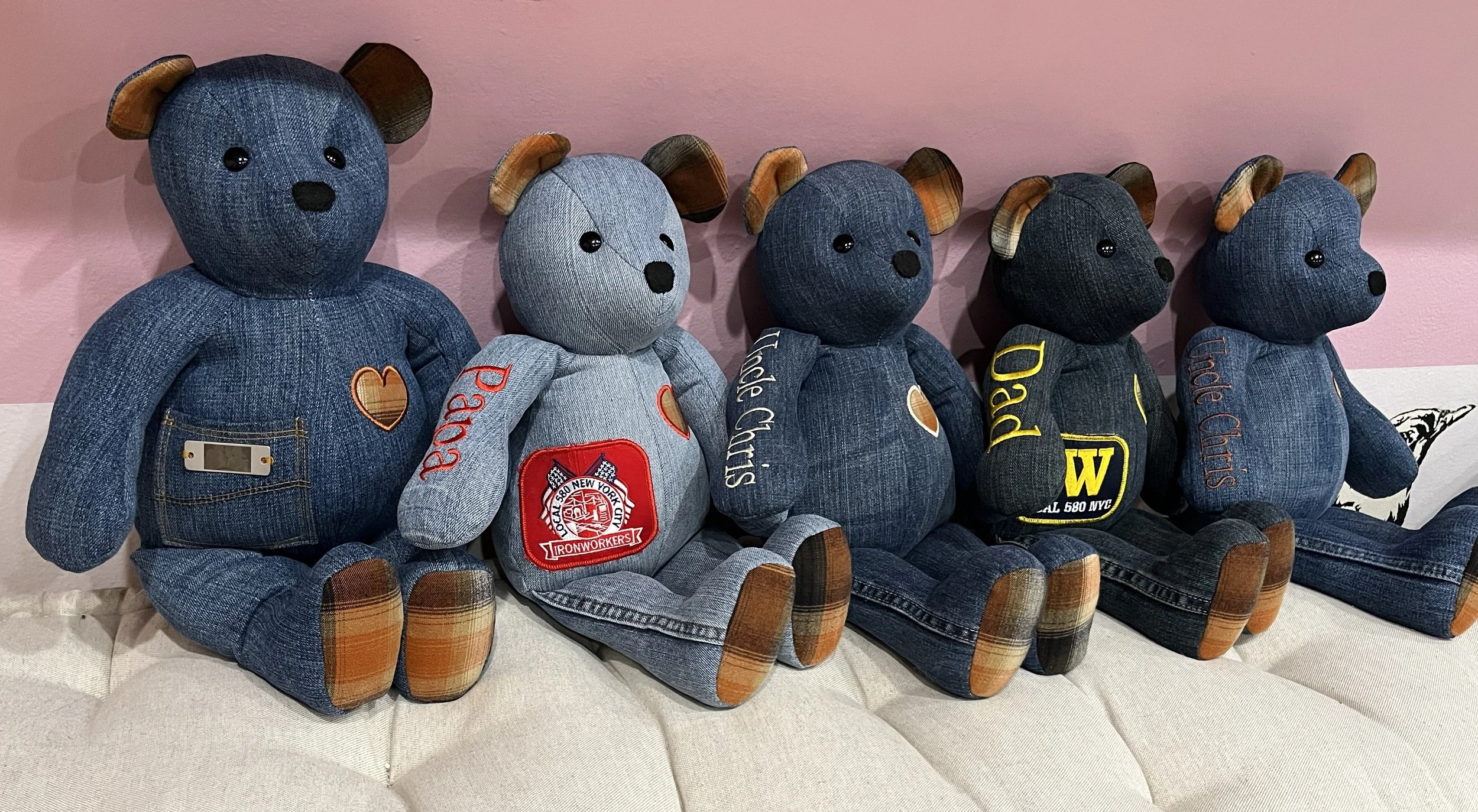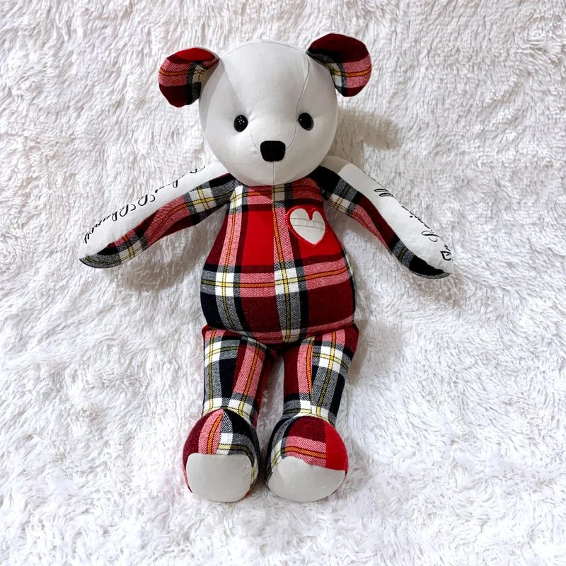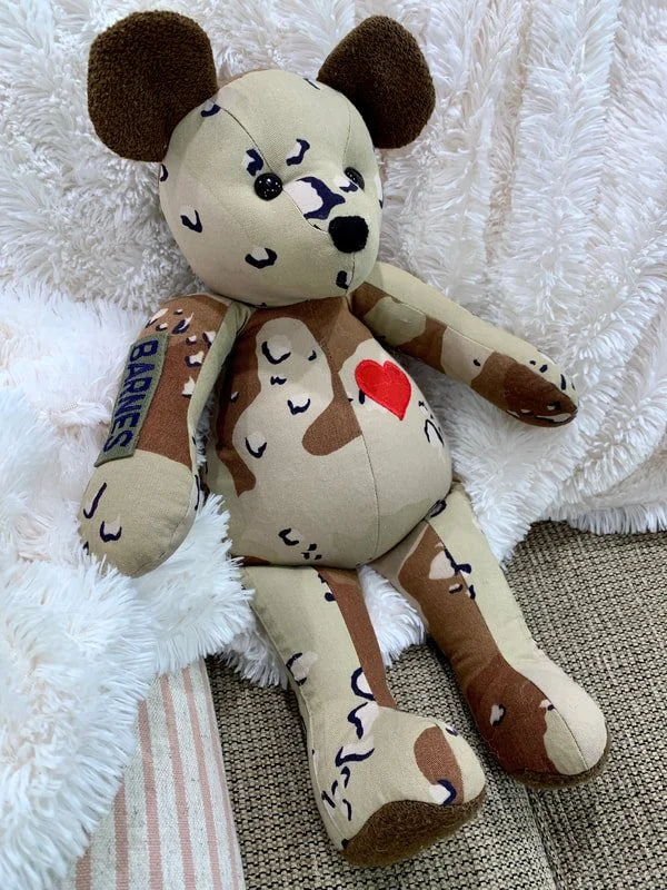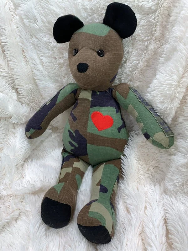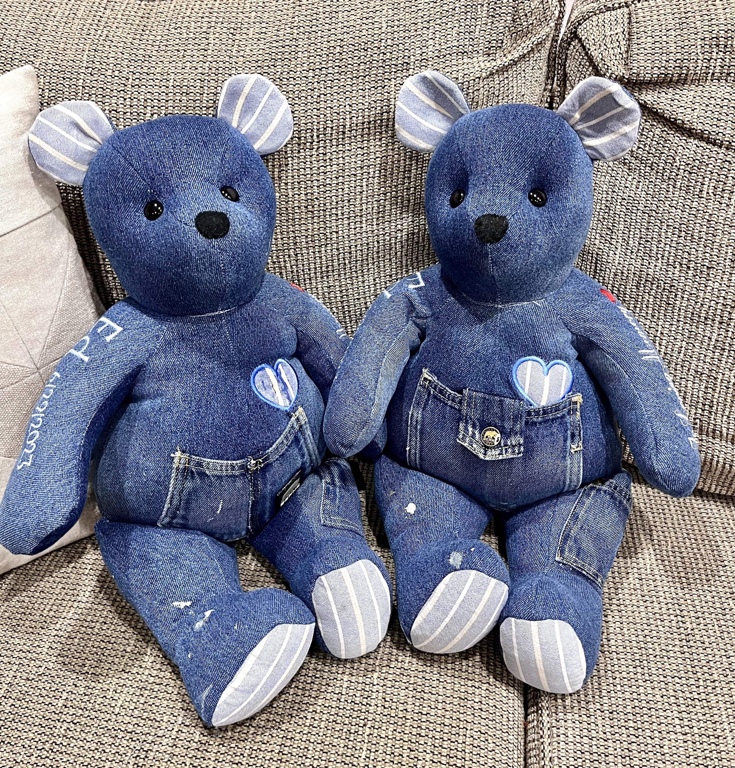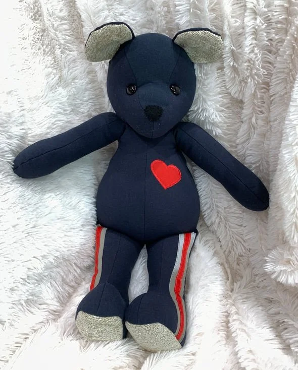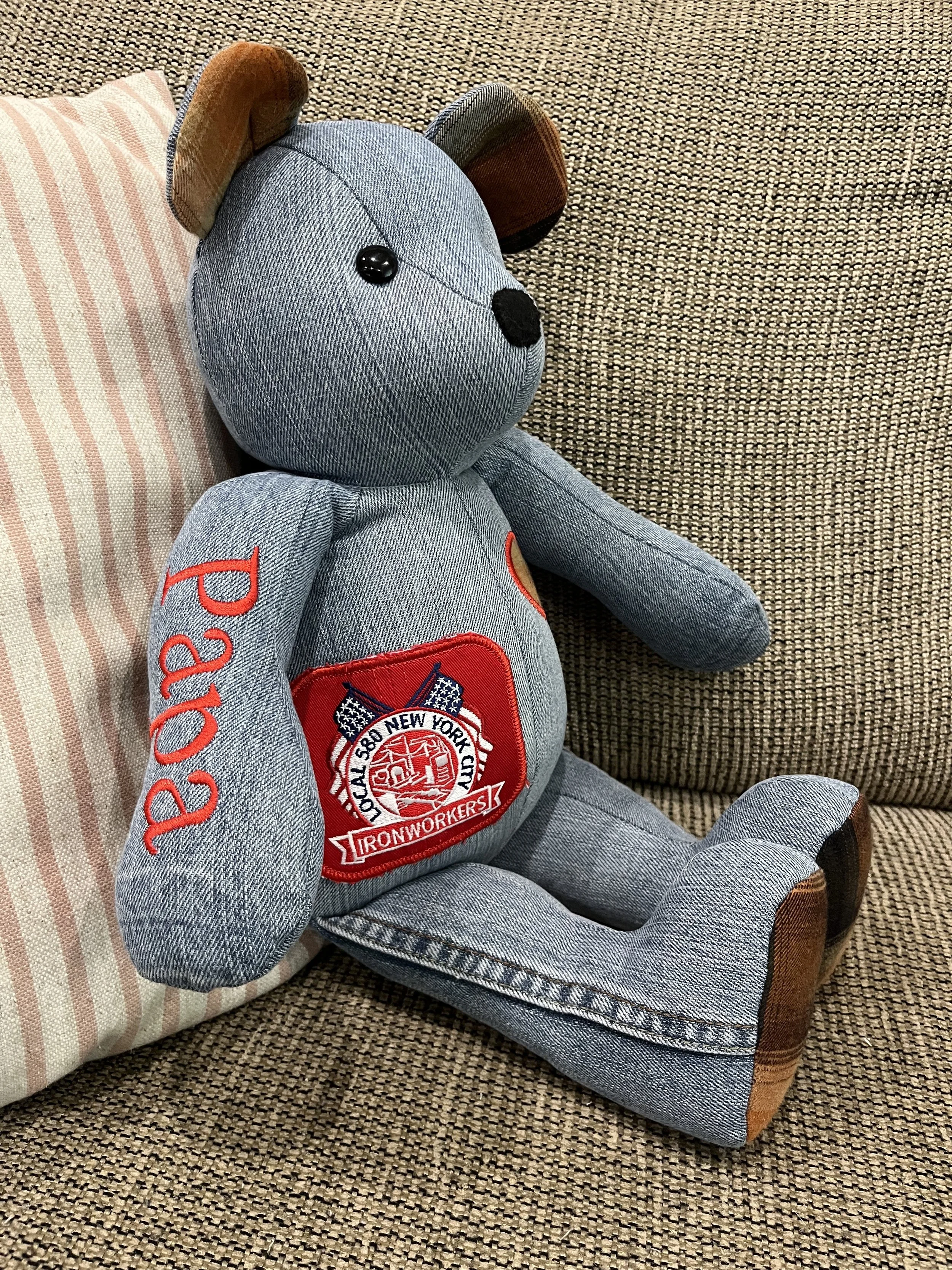 Made from the clothing of your loved ones. Whether they’re off to college, grown and moved away or gone from this life, these bears will bring them close.